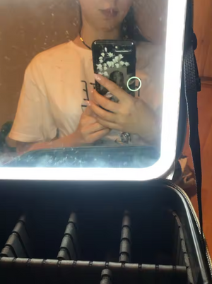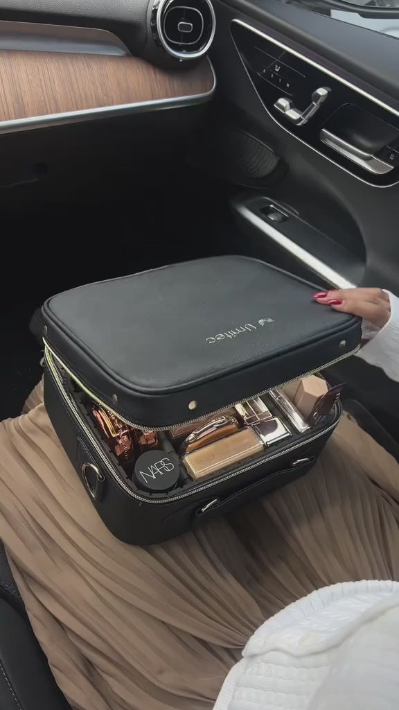 A travel-ready makeup case with a built-in LED mirror, designed to help you get ready effortlessly—anytime, anywhere.